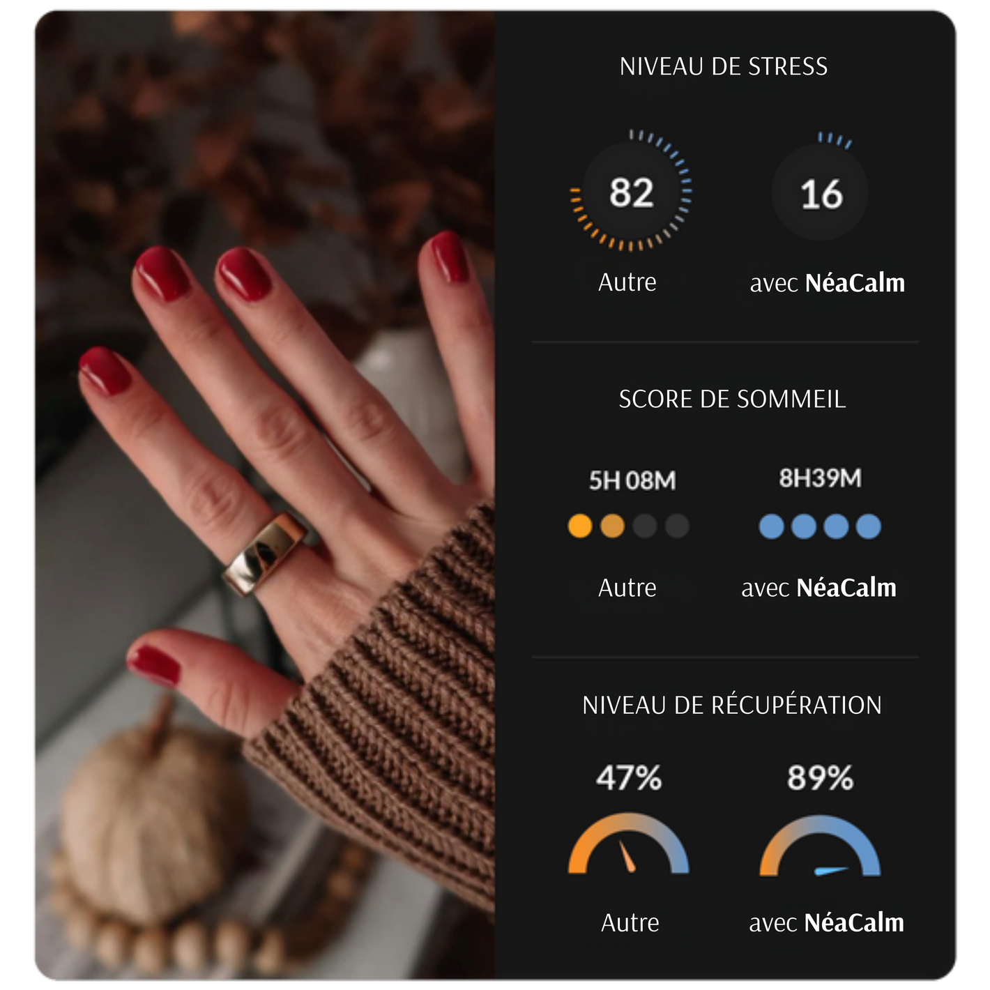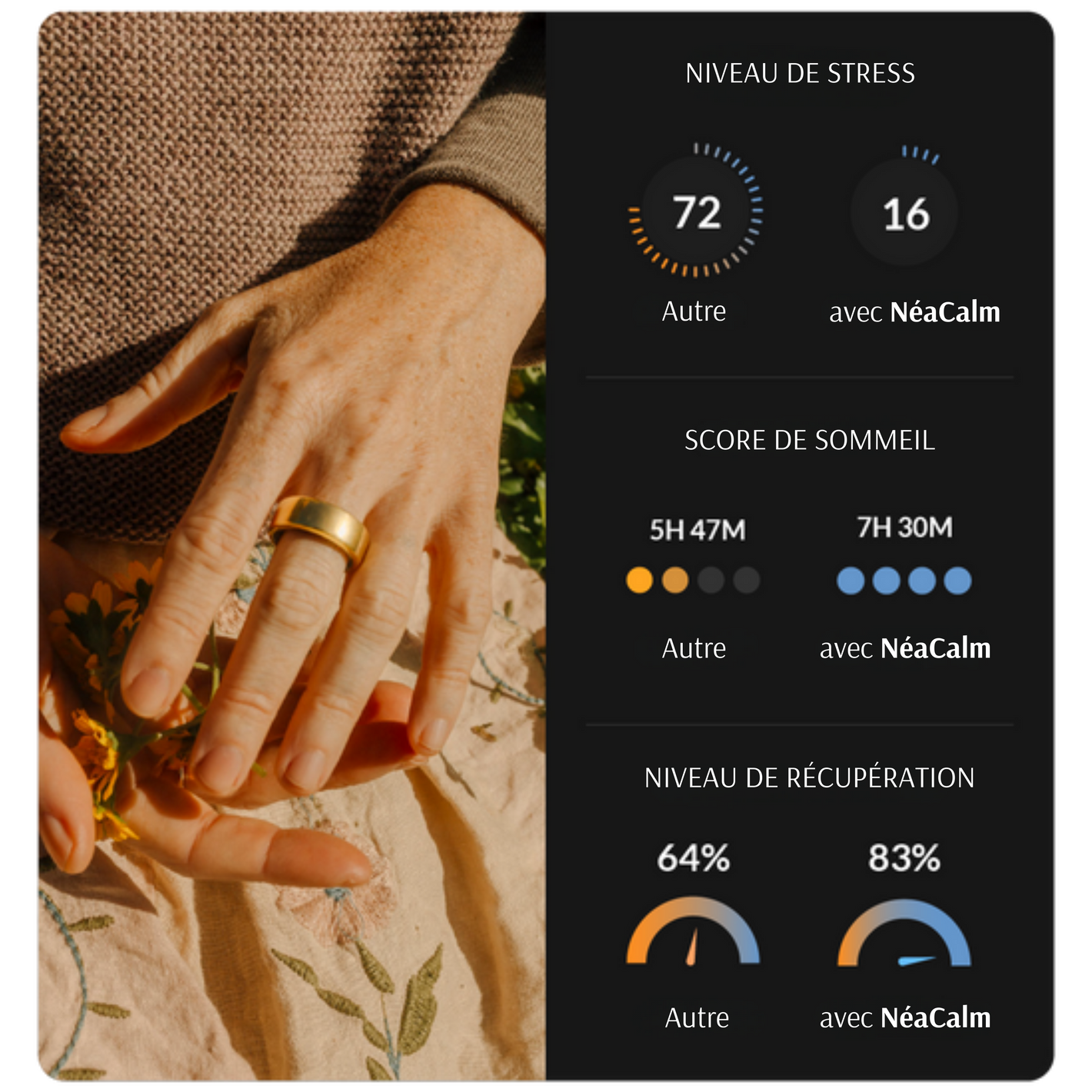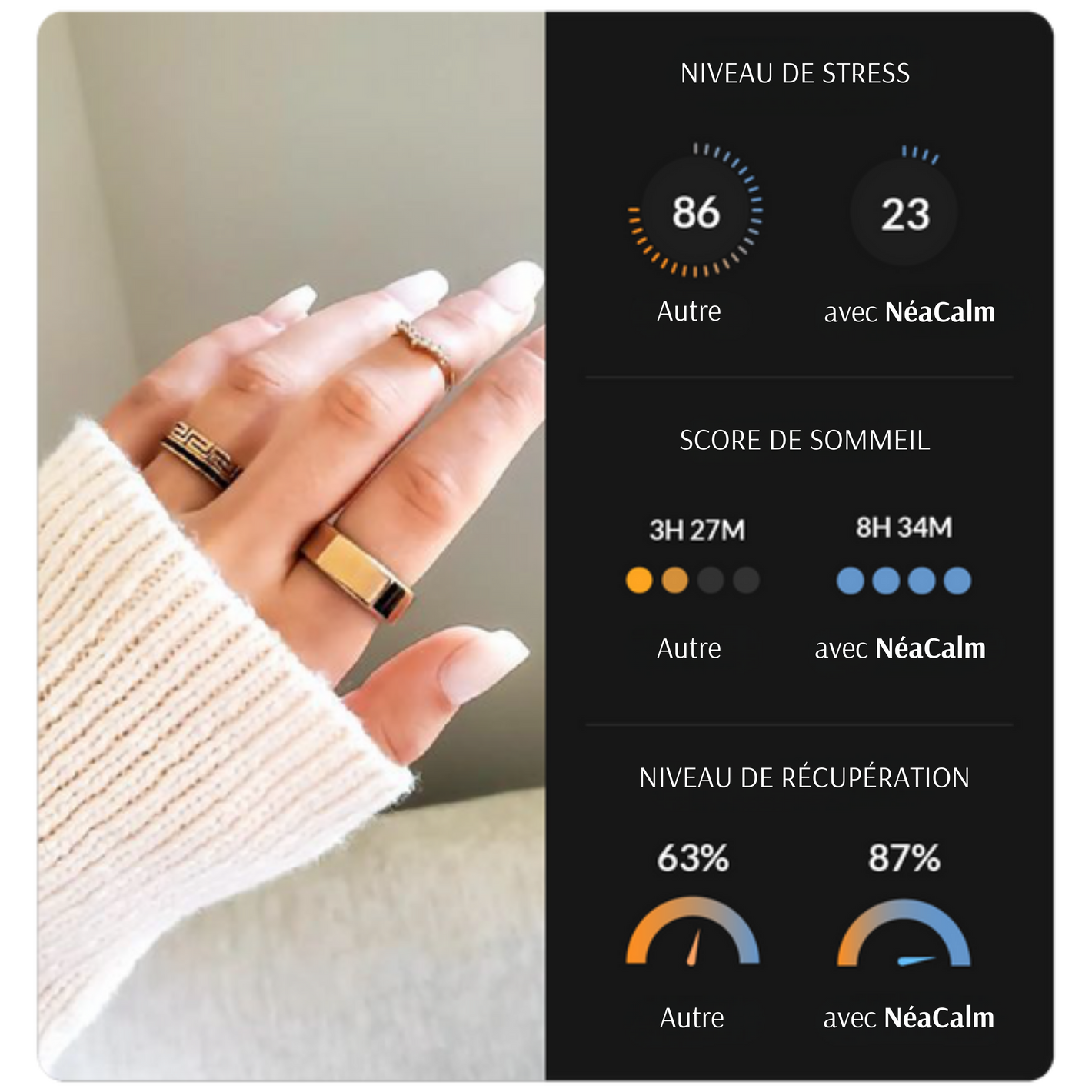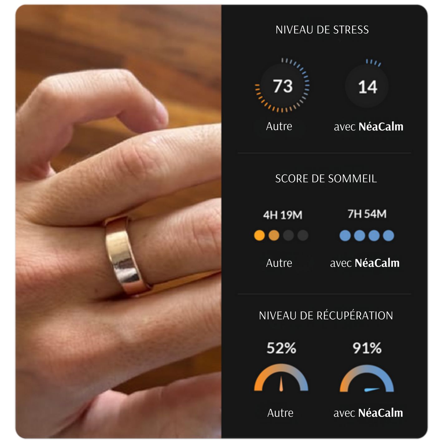 Avec son look raffiné et son confort, la bague NeaCalm permet de se reconnecter à son corps et son esprit où que vous alliez.